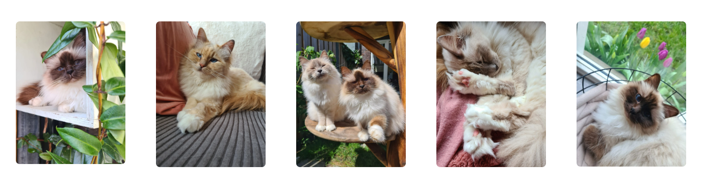 Ik ben Celeste, en samen met mijn vriend verzorgen wij onze lieve Birmanen en genieten we van de kittens die rond hobbelen, van alle knuffels en de ondeugende streken die erbij horen. Onze katten hebben vrij toegang tot het hele huis en kunnen veilig genieten van een frisse neus in onze afgeschermde tuin.